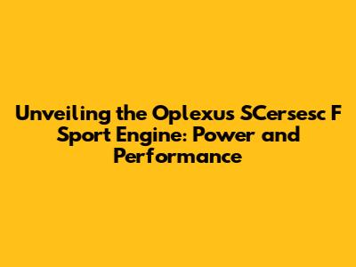 Unveiling The Oplexus SCersesc F Sport Engine: Power And Performance