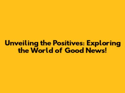 Unveiling The Positives: Exploring The World Of Good News!