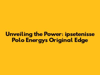 Unveiling The Power: Ipsetenisse Polo Energy's Original Edge