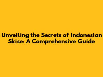 Unveiling The Secrets Of Indonesian Skise: A Comprehensive Guide