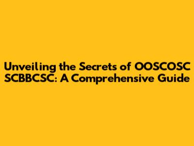 Unveiling The Secrets Of OOSCOSC SCBBCSC: A Comprehensive Guide