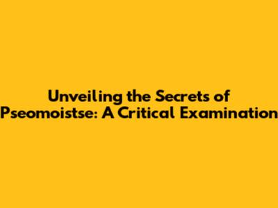 Unveiling The Secrets Of Pseomoistse: A Critical Examination