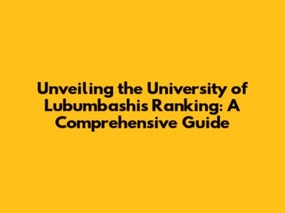 Unveiling The University Of Lubumbashi's Ranking: A Comprehensive Guide