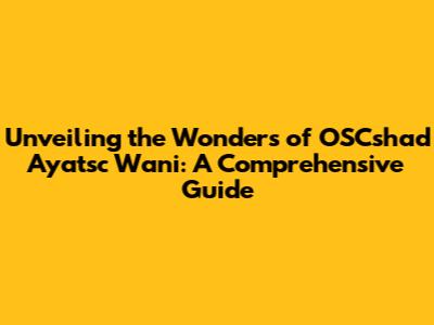 What is OSCshad Ayatsc Wani, and Why Should You Care?