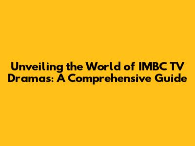 Unveiling The World Of IMBC TV Dramas: A Comprehensive Guide