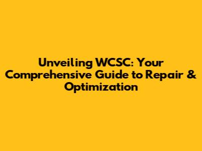 Unveiling WCSC: Your Comprehensive Guide To Repair & Optimization