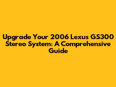Hey guys! So, you're looking to upgrade the stereo in your classic 2006 Lexus GS300, huh? Awesome choice! These cars are known for their luxury and smooth ride, but let's be honest, the factory sound system can sometimes leave a little to be desired. This guide is all about giving your ears a treat and bringing your audio experience into the 21st century. We'll dive into everything from picking out the right components to the installation process. Ready to crank up the volume and get started? Let's roll!