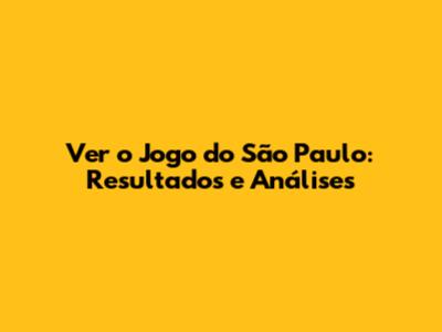 Ver O Jogo Do São Paulo: Resultados E Análises