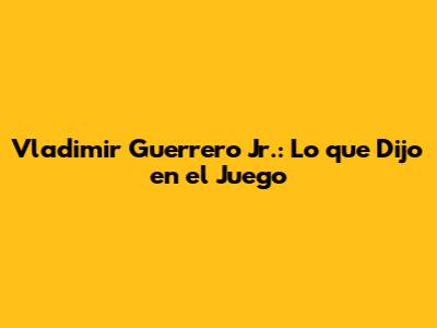Vladimir Guerrero Jr.: Lo Que Dijo En El Juego