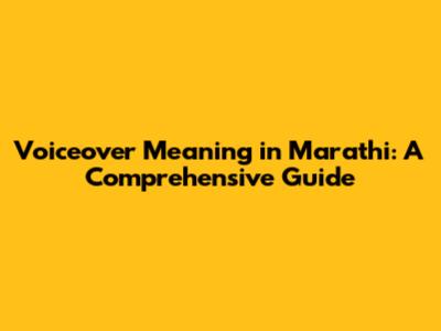 Voiceover Meaning In Marathi: A Comprehensive Guide