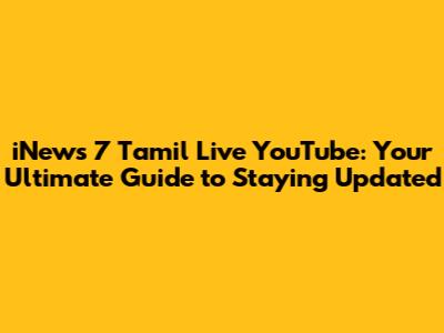 Hey guys! Are you looking for a way to stay informed about the latest happenings in Tamil Nadu and around the world? Well, look no further! In this article, we're diving deep into the world of iNews 7 Tamil Live on YouTube. We'll explore everything from what makes this channel a go-to source for news to how you can make the most of its live broadcasts and on-demand content. Whether you're a news junkie or just want to keep up with current events, this guide has got you covered. So, grab a cup of coffee, get comfortable, and let's get started!