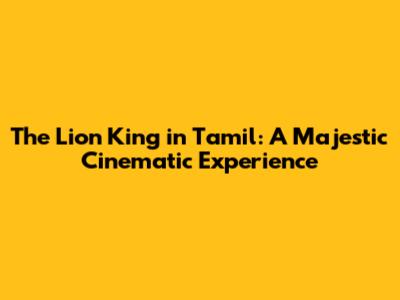 Watch The Lion King In Tamil: A Majestic Cinematic Experience