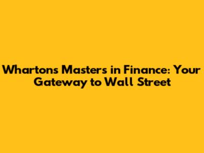 Wharton's Master's In Finance: Your Gateway To Wall Street