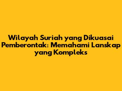 Hei guys, mari kita selami topik yang agak rumit tapi penting banget buat dipahami: wilayah Suriah yang dikuasai pemberontak. Ketika kita ngomongin Suriah, yang kebayang biasanya konflik berkepanjangan, tapi penting banget buat kita mengerti siapa aja sih yang pegang kendali di berbagai area di sana, terutama para kelompok pemberontak. Pemahaman ini nggak cuma penting buat ngikutin berita, tapi juga buat ngerti implikasi kemanusiaan dan geopolitik yang ada. Jadi, siapin kopi kalian, karena kita bakal kupas tuntas soal ini.