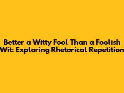 Hey guys! Ever heard the saying, "Better a witty fool than a foolish wit"? It's a classic, right? But have you ever stopped to think about what makes it so catchy and memorable? Well, buckle up because we're diving deep into the world of rhetorical devices to uncover the secrets behind this clever little phrase. This involves a type of repetition that's more than just saying the same word over and over; it's about playing with sounds and structures to create a lasting impact. In the following section, we'll dissect the sentence to identify the specific type of repetition employed and understand why it's so effective.