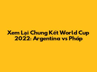 Xem Lại Chung Kết World Cup 2022: Argentina Vs Pháp