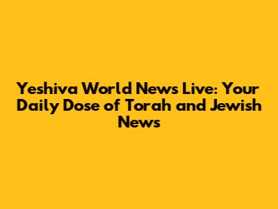 Yeshiva World News Live: Your Daily Dose Of Torah And Jewish News