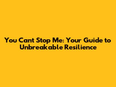 You Can't Stop Me: Your Guide To Unbreakable Resilience