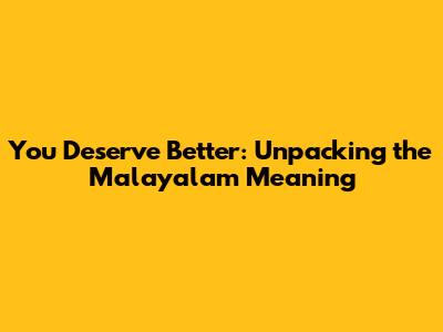 You Deserve Better: Malayalam Meaning Explained