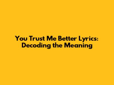 You Trust Me Better Lyrics: Decoding The Meaning