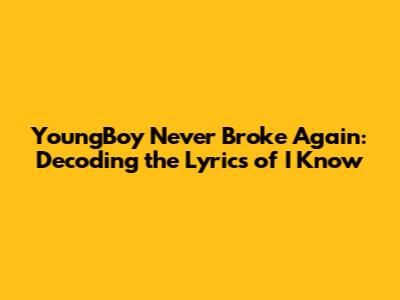Alright, guys, let's dive deep into the lyrical world of YoungBoy Never Broke Again, especially focusing on his track "I Know." This isn't just another song; it's a raw, unfiltered glimpse into YoungBoy's life, thoughts, and experiences. To truly appreciate his artistry, we need to break down the layers and understand what he's really saying. YoungBoy Never Broke Again's music often reflects his personal struggles, street life, and emotional vulnerabilities. By understanding the context, we can gain a deeper connection with the artist and his message.