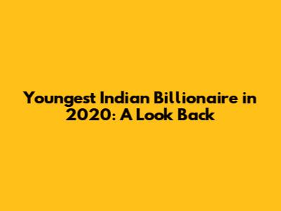 Youngest Indian Billionaire In 2020: A Look Back