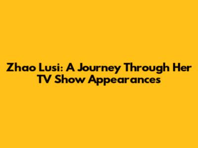 Zhao Lusi: Unveiling Her TV Show Appearances