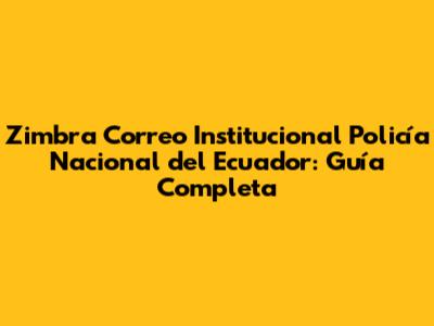 Zimbra Correo Institucional Policía Nacional Del Ecuador: Guía Completa